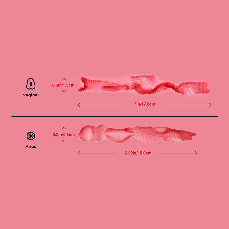 Tantaly comprende la importancia de la ubicación precisa de los orificios para lograr la máxima experiencia de placer. Por eso los orificios vaginal y anal han sido diseñados para moverse hacia atrás para obtener una posición anatómicamente más correcta, facilitando varias posiciones. Además, cada punta y textura han sido cuidadosamente elaboradas en el diseño de los agujeros.