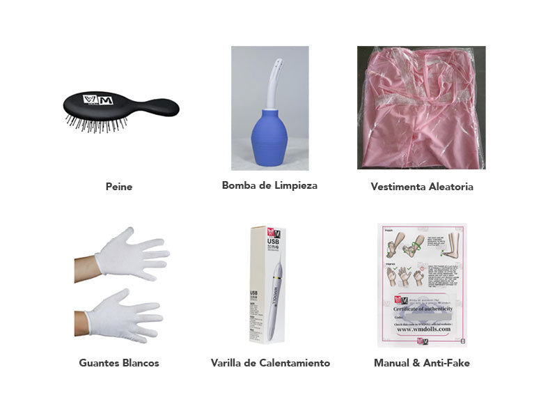 Cada una de las muñecas de WMDOLL viene con un set de accesorios incluidos para su cuidado. Dentro de la caja encontraras: