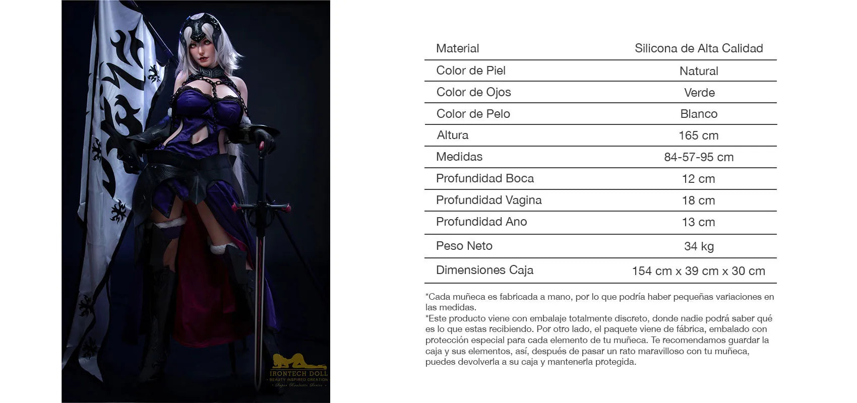 EVA se alza imponente ante ti, con esa armadura oscura que resalta su figura poderosa y curvilínea, y cadenas plateadas cruzando su escote profundo y dejando al descubierto la suavidad de su piel pálida. Con espada en mano y capa ondeante, esta guerrera valiente no espera permiso: te desafía a enfrentarla, a someterte a su fuerza o a conquistarla con pasión desatada. Esta muñeca sexual cosplay de espíritu indomable está lista para batallas de placer donde ella dicta las reglas… hasta que decidas tomar el control. ¿Te atreves a probar su filo y su calor?