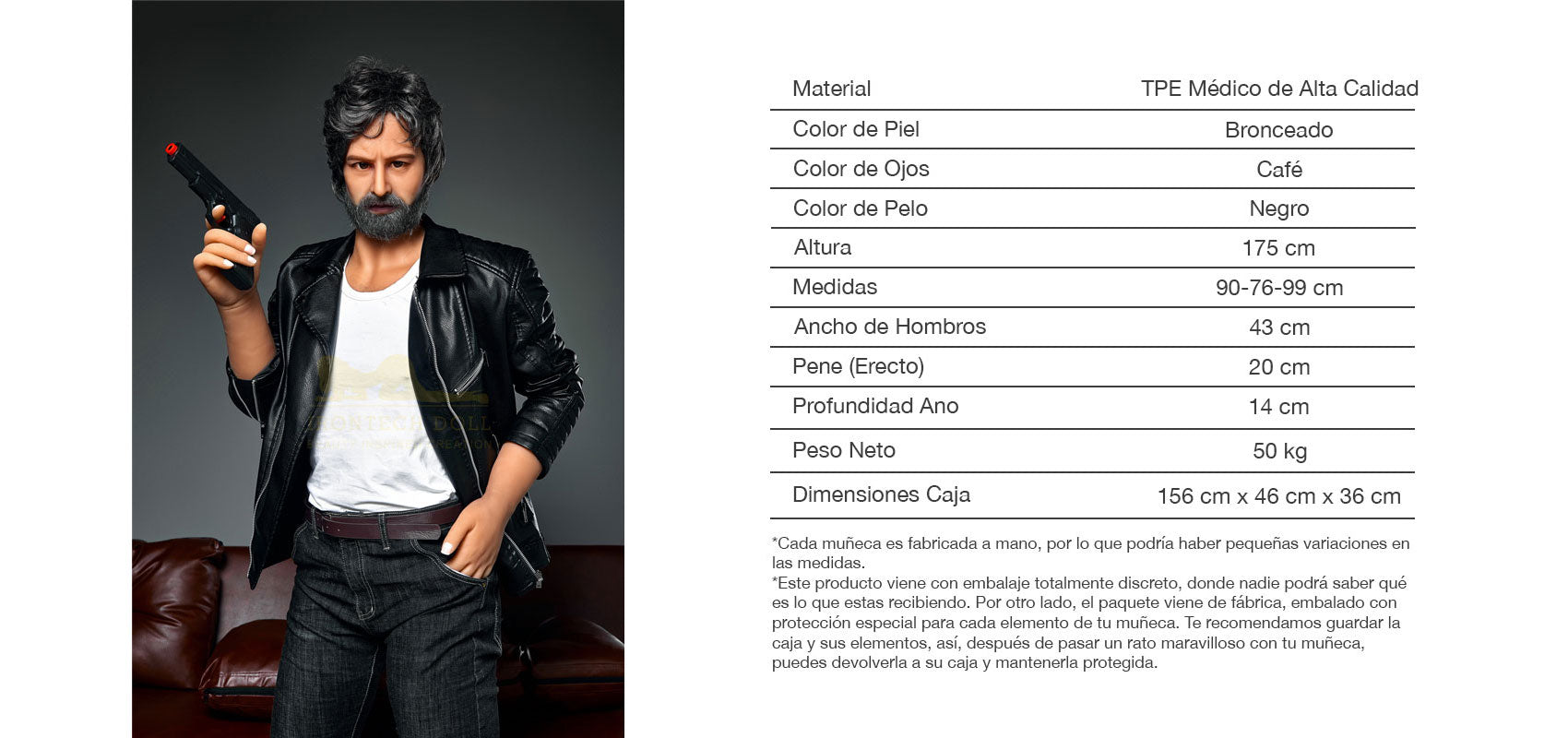 Personaliza a William con las opciones que más te gusten. Importante: Este muñeco viene por defecto SIN pelo de cuerpo implantado, pelo púbico ni barba. Puedes agregar esta y muchas opciones más en las opciones de personalización.