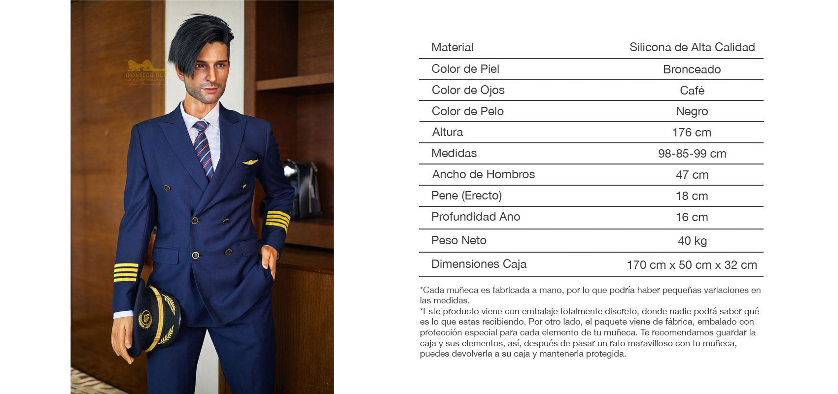 ¡Vuela alto con George! Este sexy piloto es la respuesta a tus sueños. Un muñeco sexual listo para complacerte siempre con clase y sensualidad. Cada detalle en su cuerpo está hecho para que te derritas de placer. George puede ser solo tuyo si así lo deseas.