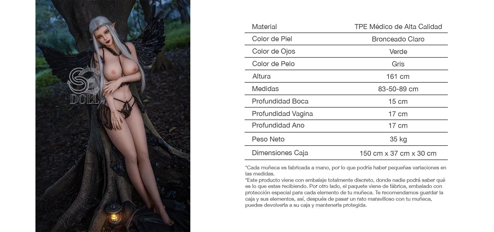 ¡Piérdete por completo en la magia y sensualidad élfica de Samantha! Esta muñeca sexual despertará tus fantasías y te seducirá con su misterio y sus delicados detalles. Con ella podrás experimentar el lado más secreto del mundo de Tolkien.