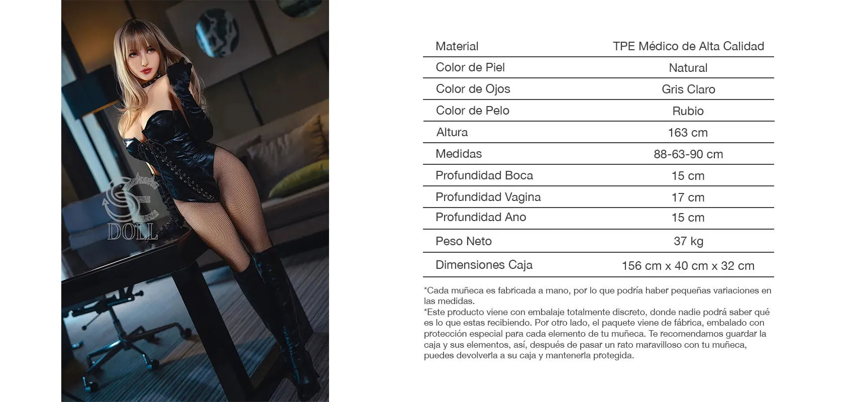 ¡Prepárate para vivir el glamour con Winola! Con una sensualidad a la que pocos pueden resistirse y un cuerpo suave y esculpido, Winola sobresale por sobre el resto de las muñecas sexuales realistas. Ella esta lista para llenar tus noches de lujuria y erotismo.
