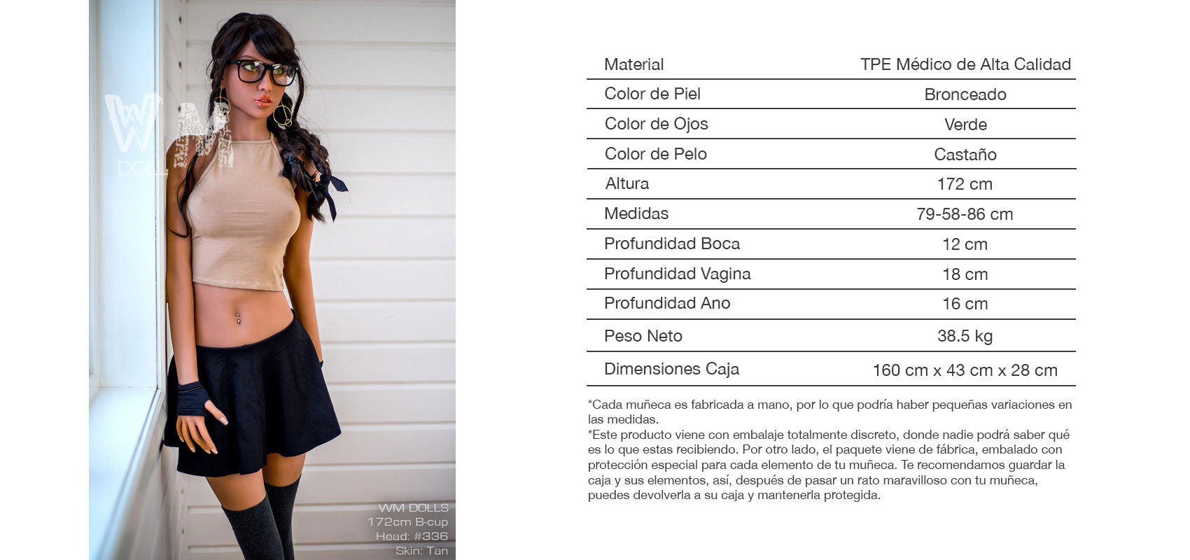 WM Dolls se ha consolidado como una marca líder en el desarrollo de productos realistas, ofreciendo una sex doll utilizando TPE de alta gama, un material suave, elástico e hipoalergénico, ideal para el contacto con la piel. La estructura interna está pensada para mantener firmeza, mientras la superficie imita la piel humana con precisión. Pensada para entregar una experiencia lo más cercana posible al contacto humano real.